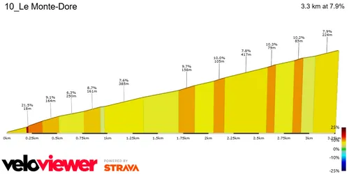 A penúltima subida do dia tem cerca de 5 quilómetros a pouco mais de 6% de inclinação média e termina a 10 quilómetros da meta. É uma subida exigente e a luta pelo posicionamento no topo será certamente intensa, já que a descida seguinte é técnica e leva os ciclistas directamente para o inicio da ascensão final. A última subida não é explosiva, desenvolve-se num vale em linha reta, mas os 3,3 quilómetros a 8% podem provocar diferenças se houver ataques desde o inicio - e é bastante provável que isso aconteça.