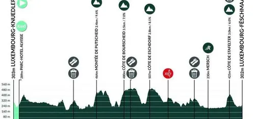 Chega a primeira grande jornada de montanha e um teste decisivo para a classificação geral. O percurso, rompe pernas e muito seletivo, termina no brutal Montée de Niklosbierg (2,8 km a 9,3% de inclinação média). O muro será escalado por três vezes em circuito antes da meta em Vianden. É um dos pontos-chave da prova, que deverá provocar diferenças significativas entre os candidatos à vitória final.