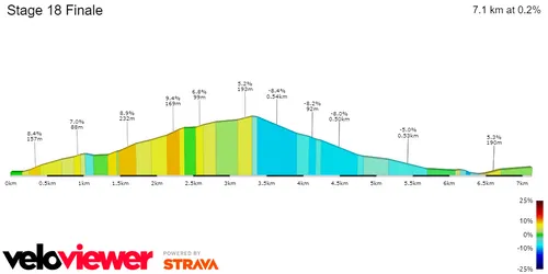 A estrada fica plana depois e nos últimos 15 quilómetros volta a subir. Os últimos 3 quilómetros são de descida, depois de 2,3 quilómetros a 5,1%, onde as inclinações sobem para 9%.