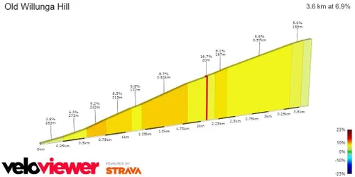 A subida mais famosa da Austrália está de volta para a etapa rainha que segue um formato tradicional. Começando em McLaren Vale, o pelotão percorrerá a área até subir duas vezes a Old Willunga Hill. No início do dia, subirão a colina Wickham e descerão a subida final, que deverá registar algumas velocidades loucas.