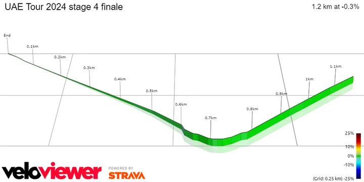 Uma etapa no Dubai. A primeira parte decorre no centro do Dubai, passando em redor do Burj Khalifa antes de atravessar Deira e contornar a Grande Bandeira. A corrida sai da cidade em direção ao deserto, passando por locais clássicos destas etapas, como a ciclovia de Al Qudra e as ilhas Jumeirah. Passa depois pela Palm Jumeirah para terminar no Dubai Harbour. Todo o percurso é feito em estradas muito largas e substancialmente retas, intercaladas por rotundas de raio muito grande e bem pavimentadas.