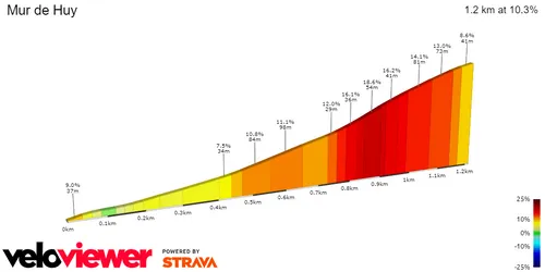 Um grind, uma subida que se torna cada vez mais íngreme. É um esforço anaeróbico puro e é ideal para os "puncheurs" e trepadores mais leves. A subida tem 1,2 quilómetros, com 10,3% de inclinação, e torna-se cada vez mais íngreme quanto mais nos aproximamos da meta. A luta na parte inicial da subida é todos os anos muito intensa. Os últimos 300 metros são muito íngremes e, por isso, os ciclistas tentam frequentemente atacar mais cedo, mas é pouco provável que um ataque disferido de longe, possa ser bem sucedido;
