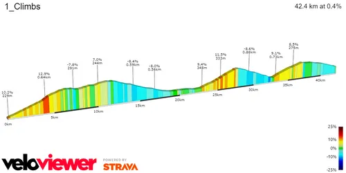 12,6 quilómetros a 5,4% é a primeira subida da corrida, uma subida de segunda categoria. Seguem-se duas subidas de terceira categoria, com 2,5 km a 6,7% e 10,4 km a 4,6%. Estas subidas serão, no entanto, um aquecimento para um dia de corrida que pode causar alguns estragos no final. Lembre-se que a distância é também de 206 quilómetros no dia, o que torna mais plausível a existência de diferenças.