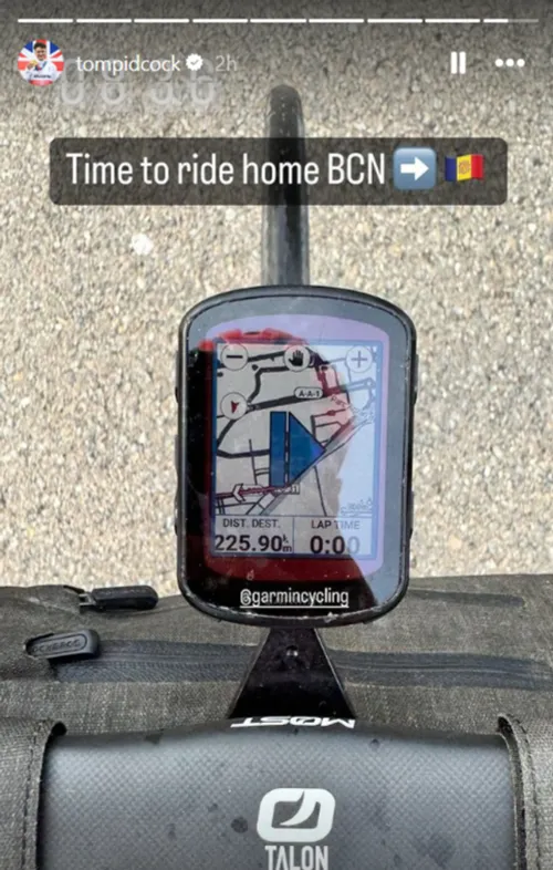 BTT, de 24 anos, deu mais uma volta épica de bicicleta até à sua casa em Andorra. Para mostrar o seu plano, Pidcock publicou na sua história oficial do Instagram uma imagem de si próprio na bicicleta, com a legenda "Hora de regressar a casa. Barcelona > Andorra".