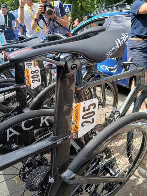 Na linha de partida da corrida de hoje, o CiclismoAtual capturou imagens da máquina que será usada por Matis Louvel, o ciclista francês de 25 anos que faz a sua terceira participação na Volta a França.