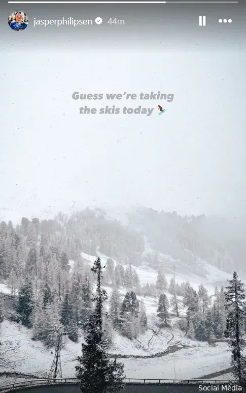 Como mostra a conta oficial do Instagram do jovem de 26 anos, a neve nos Alpes franceses estava a dar a Philipsen um pouco de dificuldade nos seus treinos. "Acho que hoje vamos levar os esquis!", legendou numa imagem pitoresca de neve pura e nevoeiro em La Plagne.