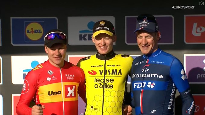 Tiesj Benoot continuámos com o lugar, porque continua a ser uma corrida de bicicleta, mas os meus pensamentos estão com o Wout e com os outros ciclistas envolvidos."