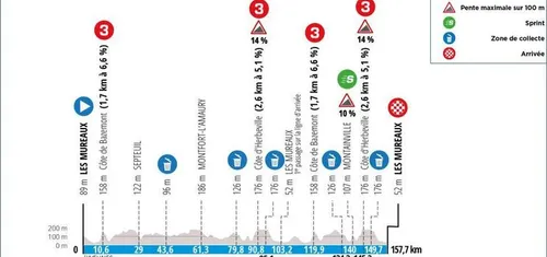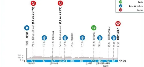 Começando e terminando em Les Mureaux, o dia será, muito provavelmente, uma lenta subida para uma secção específica da etapa. A 28 quilómetros do final, há um sprint intermédio no topo de uma colina de 700 metros, a 8%. Logo a seguir, segue-se uma descida rápida e outra pequena subida.