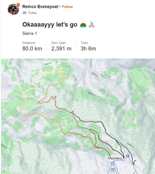 Volta ao País Basco ter deixado o belga com uma fratura da clavícula e da omoplata, Evenepoel publicou o seu regresso à altitude na sua conta oficial do Strava com a legenda "Okaaaayy let's go".