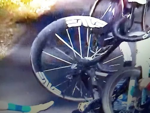 antes da queda, a Colnago já não tinha o pneu traseiro.