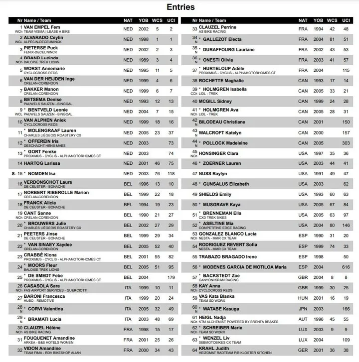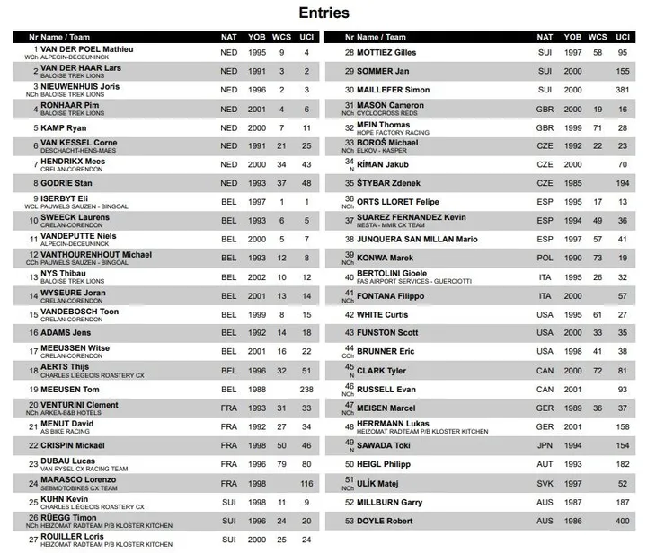 Pim Ronhaar, Joris Nieuwenhuis, Eli Iserbyt, Thibau Nys, Cameron Mason e Michael Vanthourenhout;