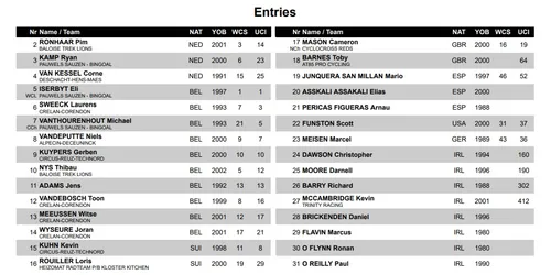 Lista de partida preliminar da prova masculina da Taça do Mundo de Ciclocrosse de Dublin com Eli Iserbyt, Thibau Nys, Michael Vanthourenhout, Cameron Mason e Pim Ronhaar