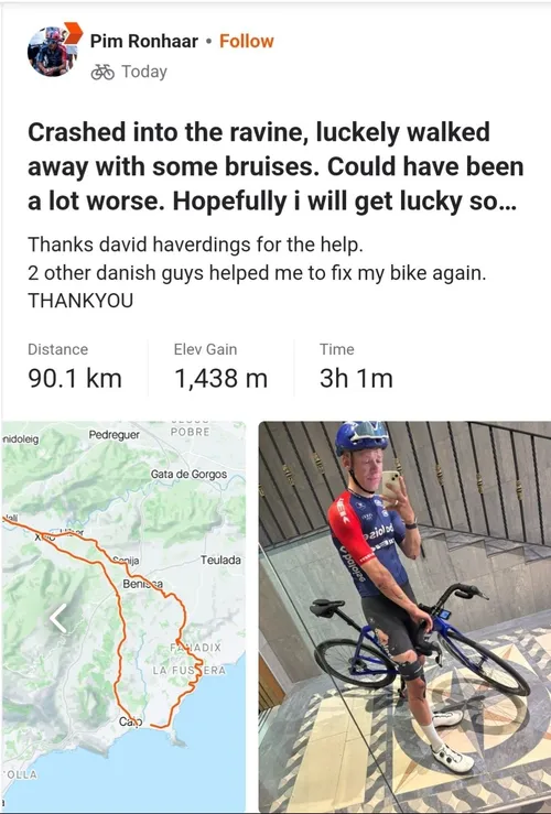 Pim Ronhaar, da Baloise Trek Lions. A sua preparação continua de vento em popa, no entanto o holandês revelou através da sua conta oficial do